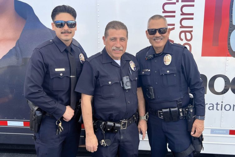 Read MoreTwo LAPD reserve police officers recently met up with their former Pacific Division training officer at an Operation School Bell event at Humphreys Avenue Elementary School in East Los Angeles.