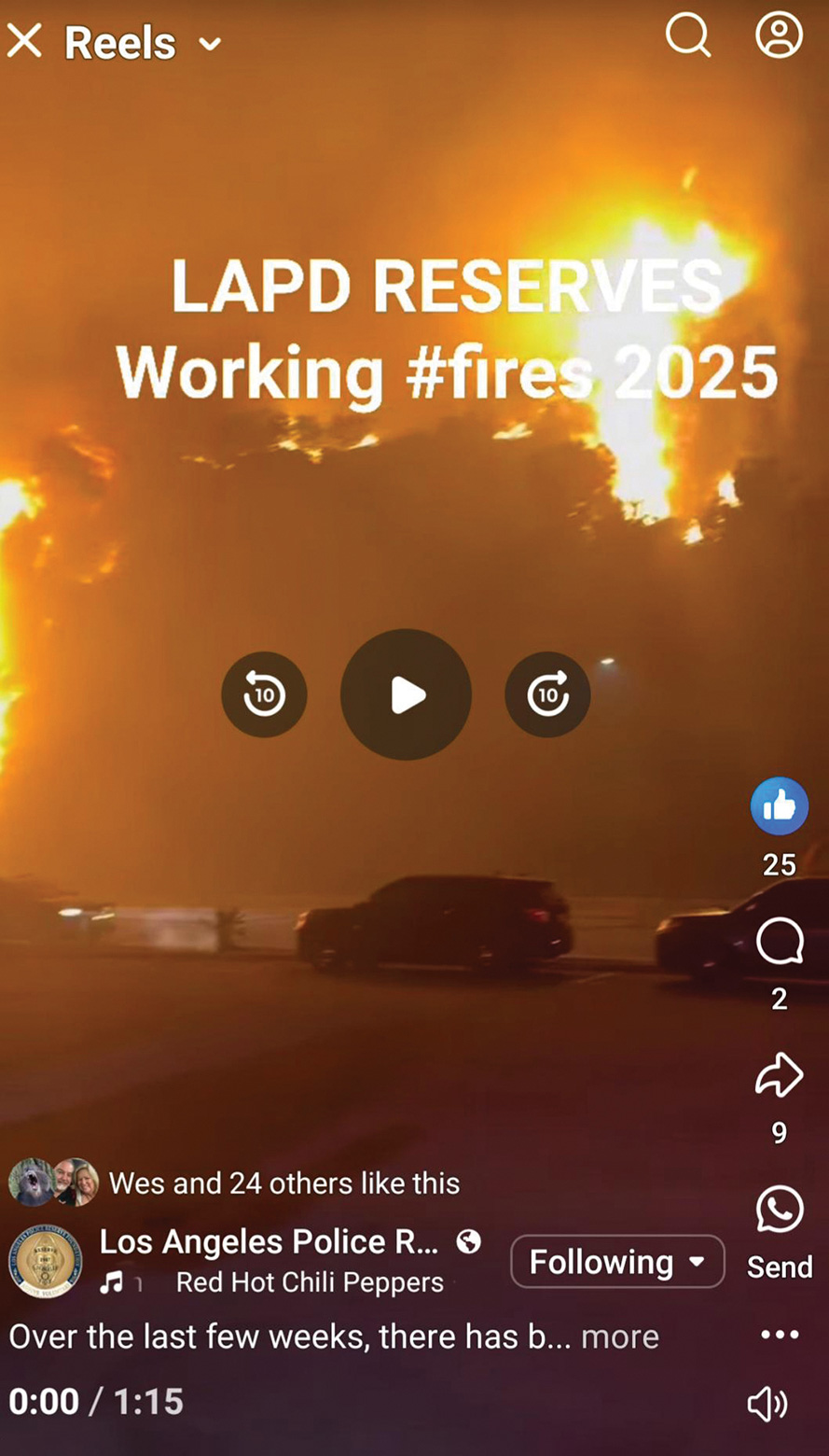 The Los Angeles Police Reserve Foundation posted a Facebook Reel highlighting many of the photos featured in this article. The video quickly went viral. Check it out at facebook.com/reel/625034480216947. LAPRF thanks all the officers who submitted photos.