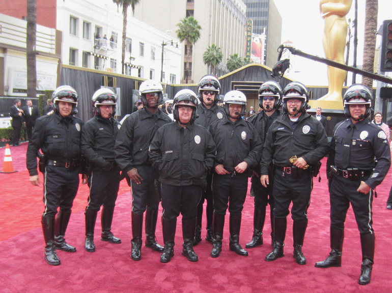 Another premier event is the red carpet at the Academy Awards. For eight of the past nine years, the Reserve Motor Unit has ensured the safety of the stars and dignitaries attending the event as they navigate in and around the limousines on the red carpet. It takes precise coordination to control the movement of thousands of people and hundreds of huge cars to make sure Hollywood’s biggest stars don’t get their freshly polished toes run over.